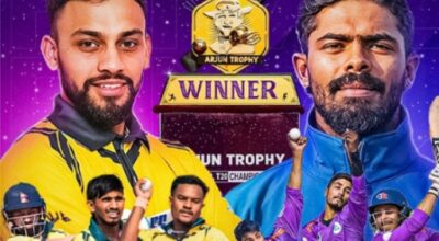 अत्तरिया : धनगढीमा जारी अर्जुन ट्रफी राष्ट्रिय क्रिकेट प्रतियोगिताको फाइनल खेल आज हुँदै छ । आज दिउँसो सवा १२ बजे हुने खेलमा उपाधिका लागि सिबाईसी अत्तरिया र फेण्ड्स क्लब डडेल्धुरा बिच प्रतिस्पर्धा हुने छ ।